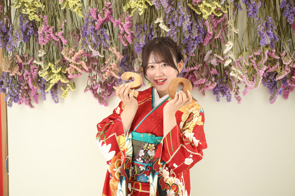 ぱっと目を引く鮮やかな赤の振袖は…
