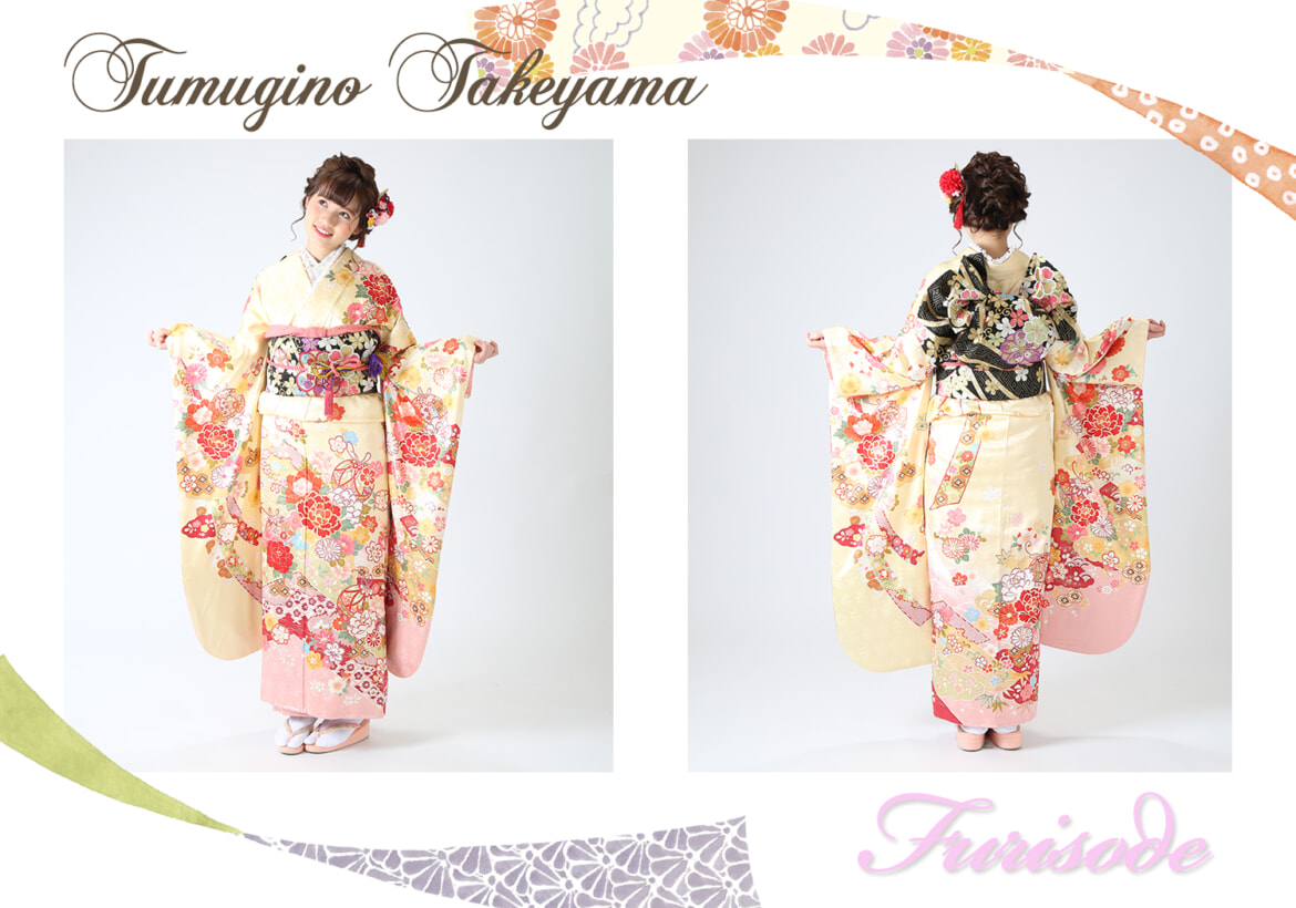 本日ご紹介の成人式振袖は古典柄、手まり・牡丹・桜・亀甲など様々な文様が描かれた