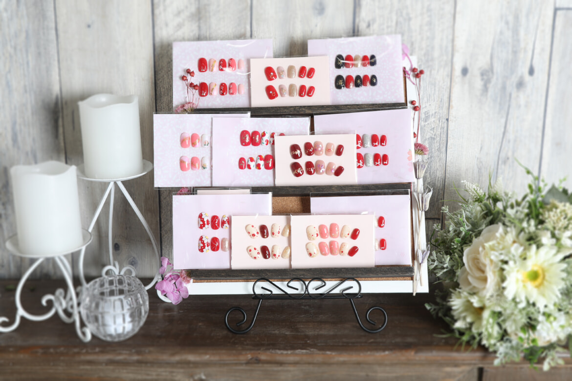 ネイルチップは美容担当手作りのジェルネイルチップになります。