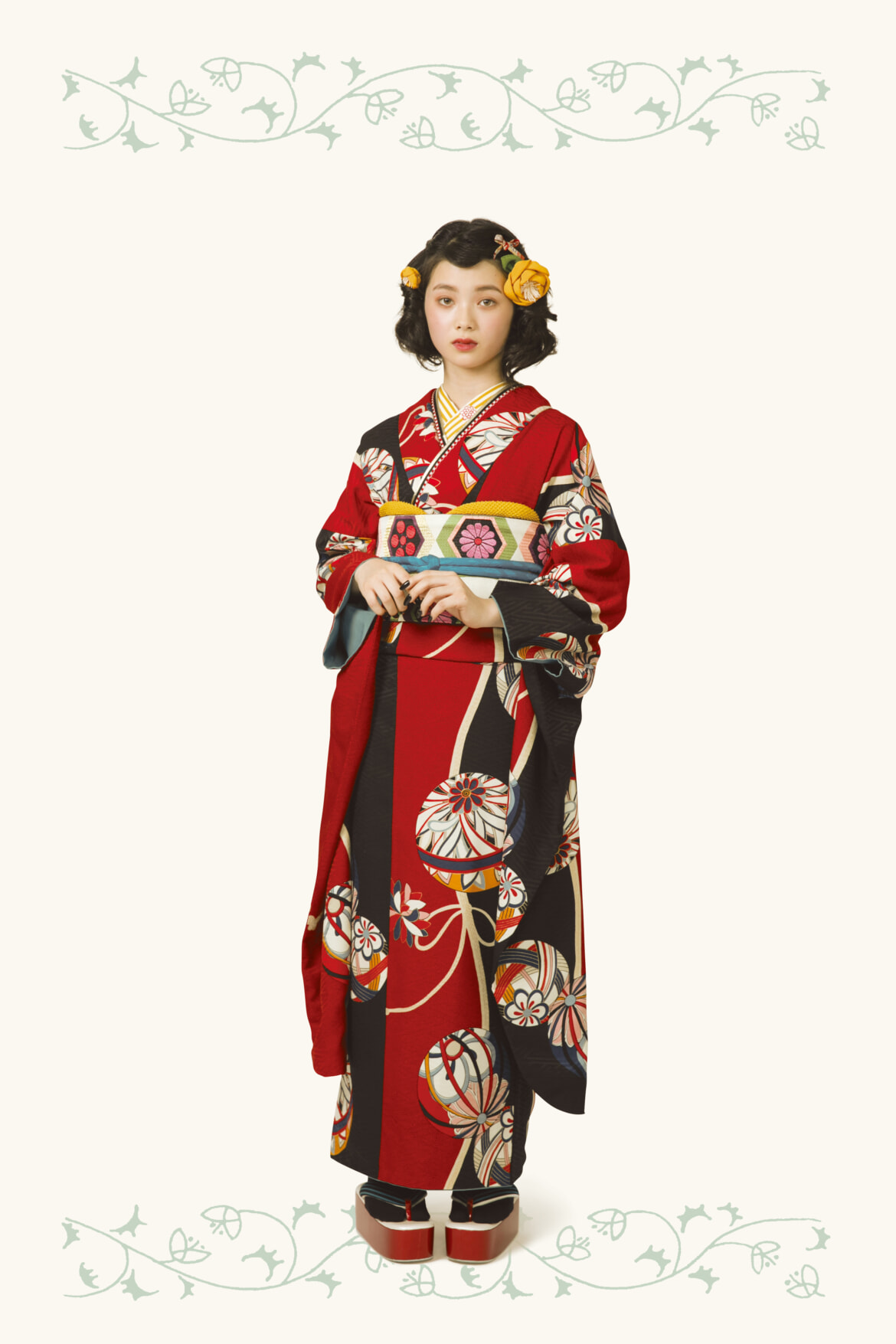 本日はフリンクから新作振袖のご案内♪致します。本日紹介の新作振袖は真紅地に手毬柄が描かれて可愛らしいお振袖になります♫