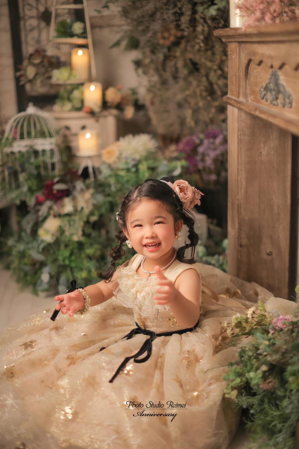 黒地にアンティーク柄がポイントで描かれて淡いベージュ色の花とアンティーク柄が左右で色が違う片身替わりは、もうそれだけでオシャレ上級者☆彡小物はレース調で揃えて、アクセントに赤を入れておしゃれな印象に(*˘︶˘*).。.:*♡
