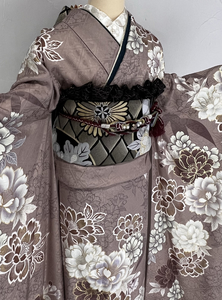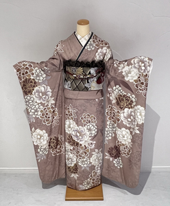 柔らかなくすみベージュが印象的なこちらの振袖。
