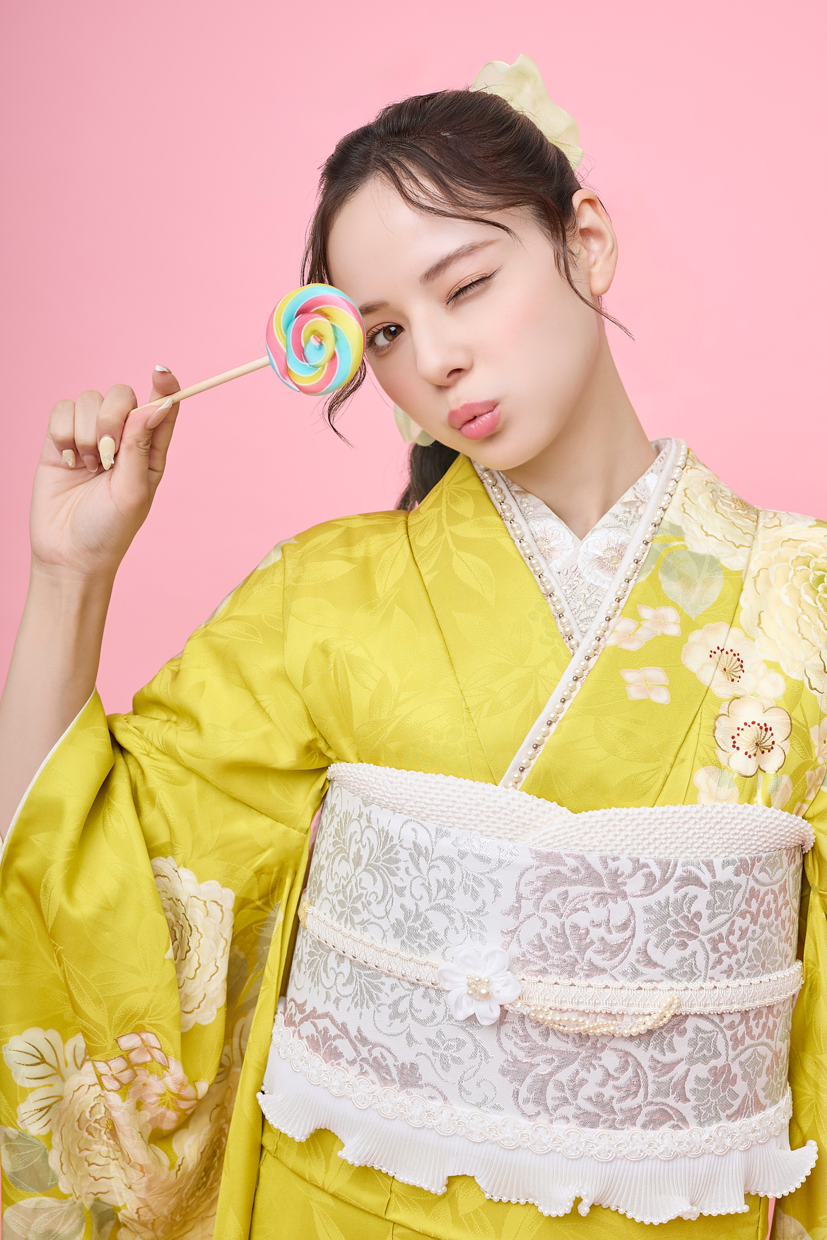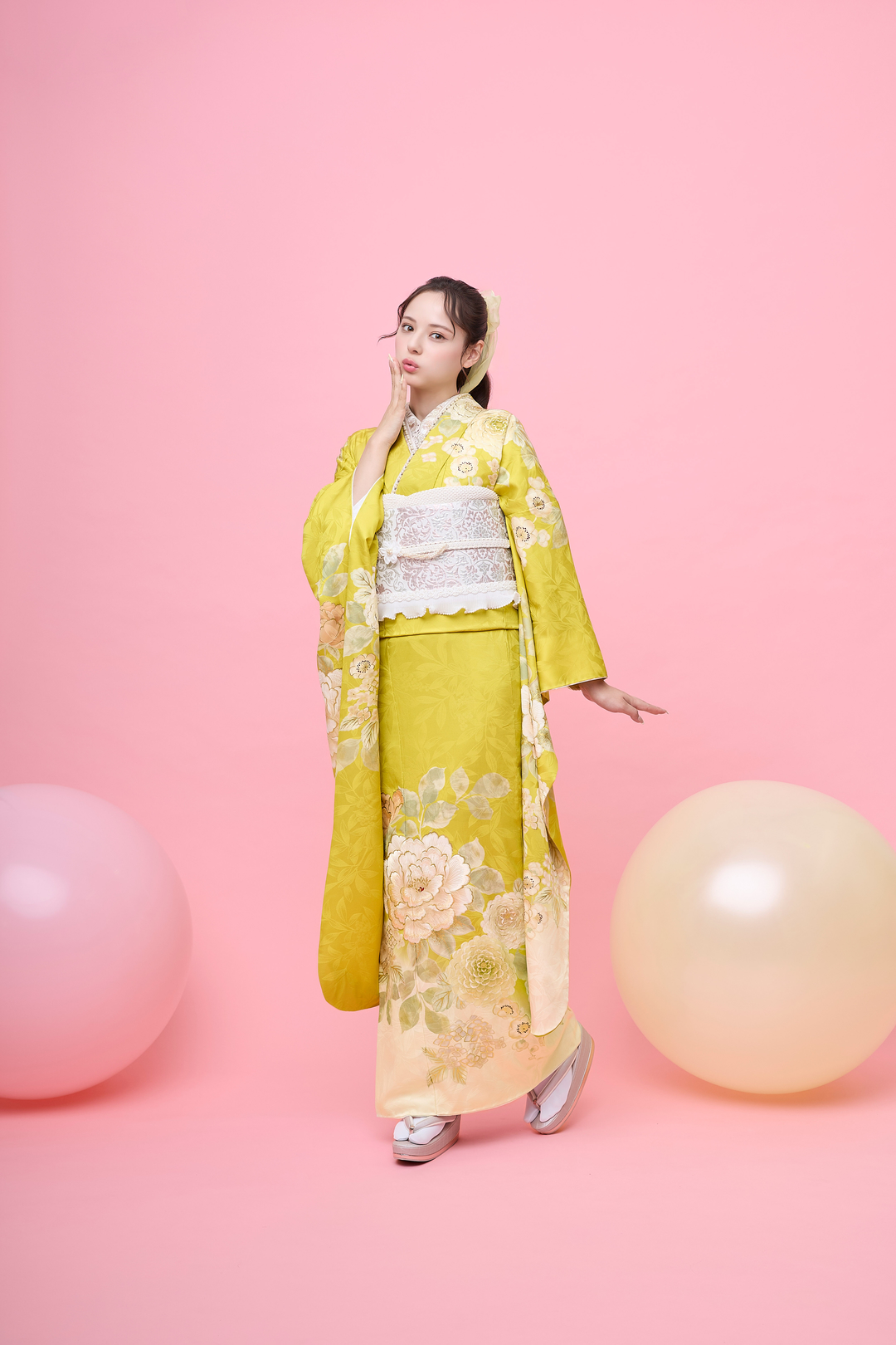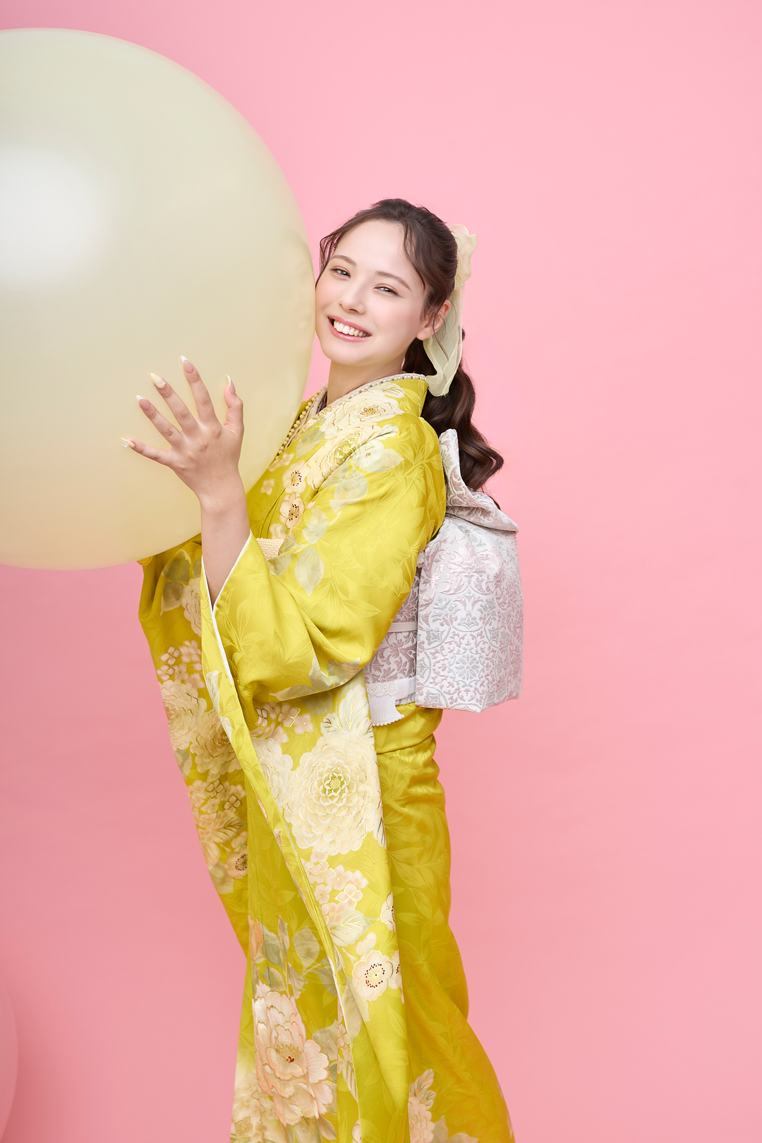黄色という色には、太陽のような明るさと希望に満ちたエネルギーが宿っています。この振袖を身にまとうと、自然と笑顔がこぼれ、周りの人々も温かい気持ちにさせてくれることでしょう。特に成人式や結婚式などの晴れの日には、お祝いの席にふさわしい華やかさを演出してくれます。