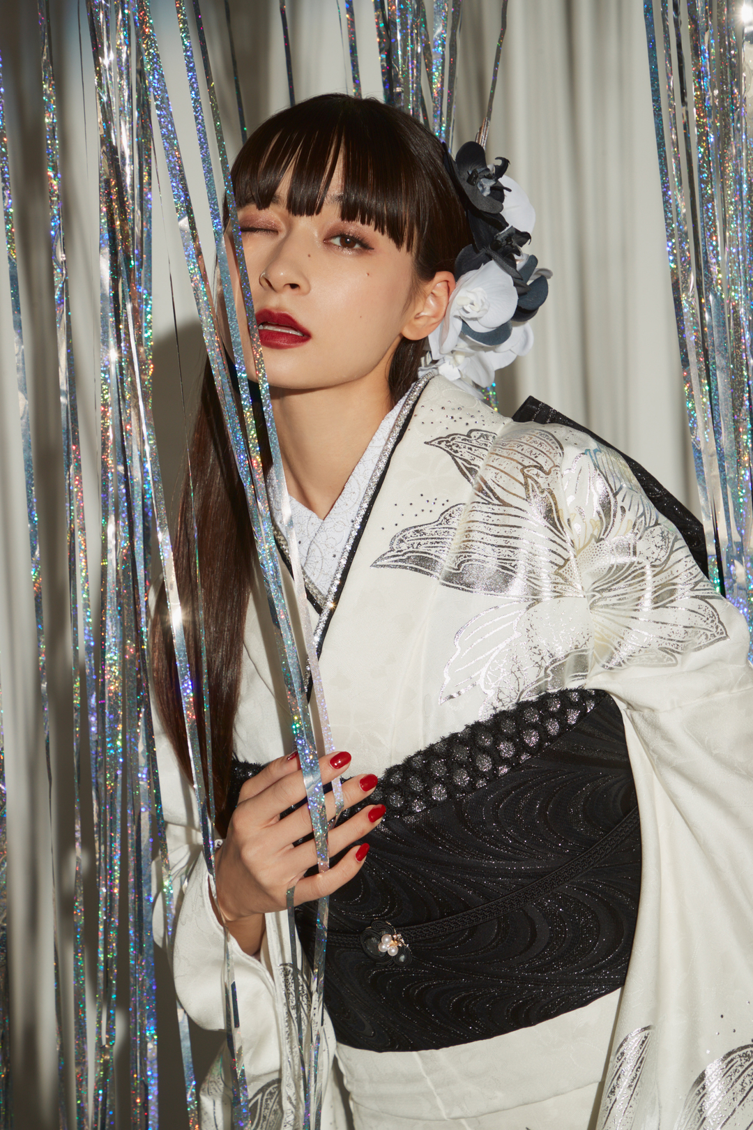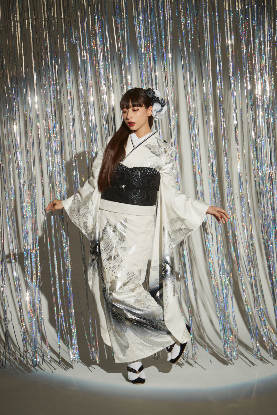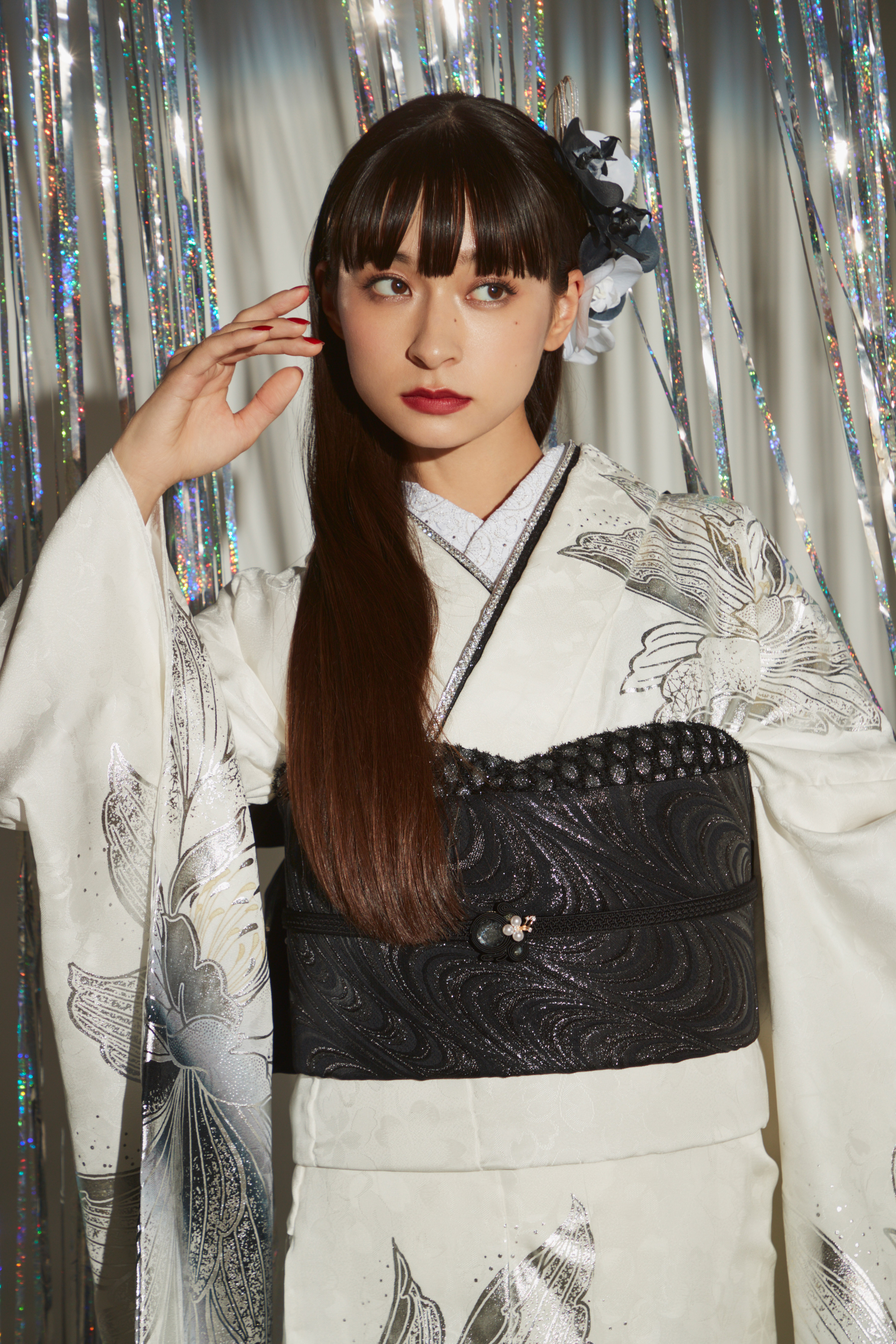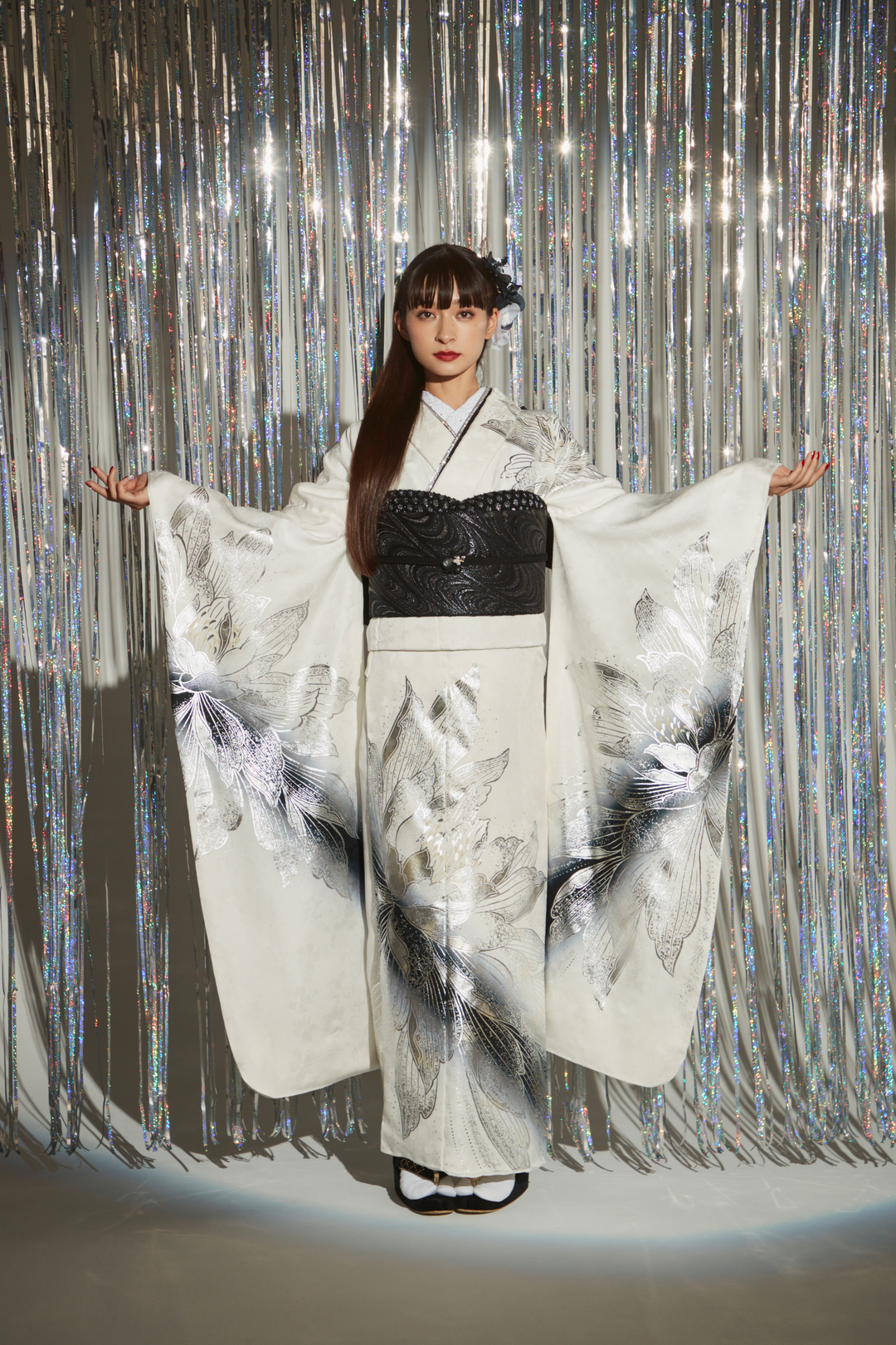 今回ご紹介させていただくのは、清楚な白地に美しい大輪の牡丹が咲き誇る、とても素敵な新作振袖です。