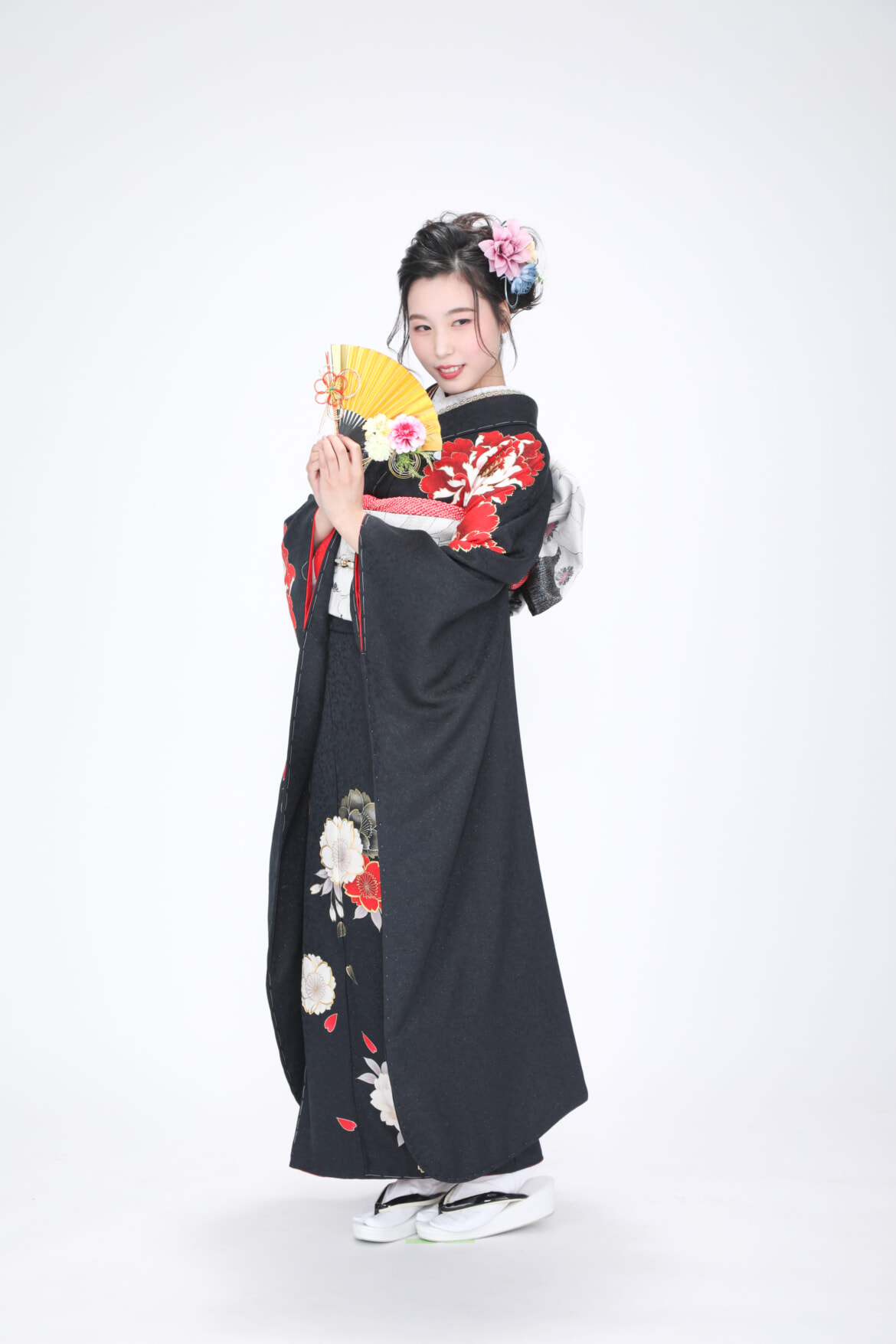 本日紹介のお振袖はに黒地に可愛らしいポップ柄が描かれた新作振袖のご案内いたします♪