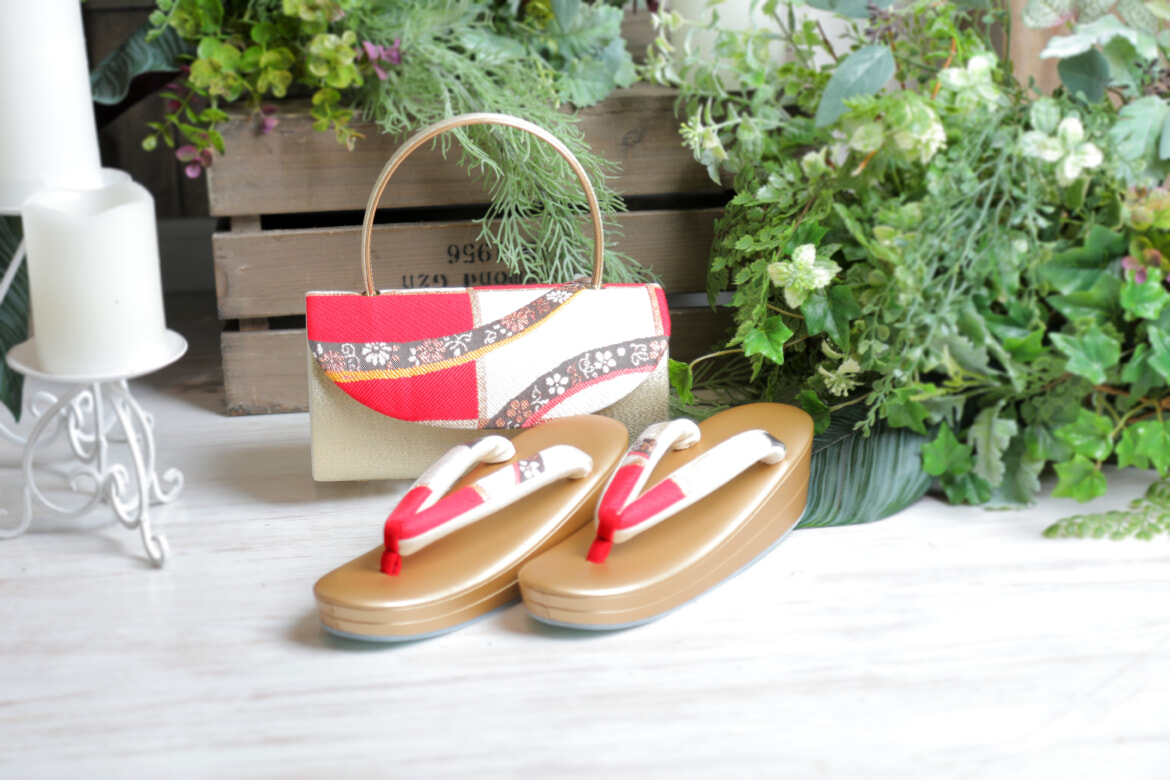 本日は古典柄やレトロ系に似合う新作草履バック入荷しましたのでご案内いたします。