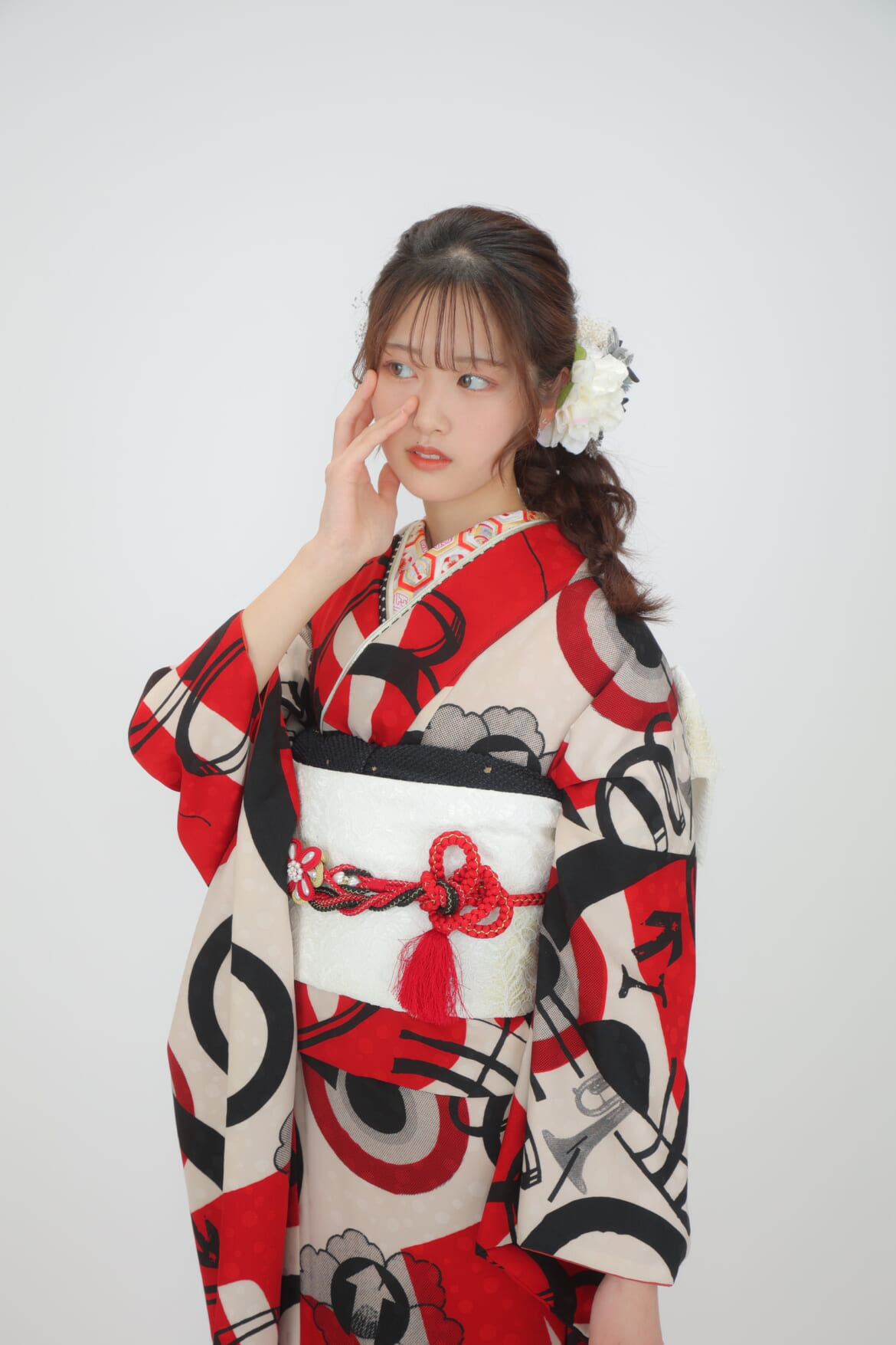 レトロポップなデザインは若者に大胆さと遊び心を提供し、どのようなシーンでも注目の的になること間違いなしです。トランペットのシルエットが矢印でつながれているデザインや、飛び跳ねるような音符が散りばめられた振袖は、見る人の心に活気を与えます。本来の日本の美しさを現代的な感覚で楽しみたいと考えている方には、ぜひ一度手に取ってみてはいかがでしょうか。それはあなたの特別な日を、より色鮮やかで意味深いものに変えてくれるはずです。